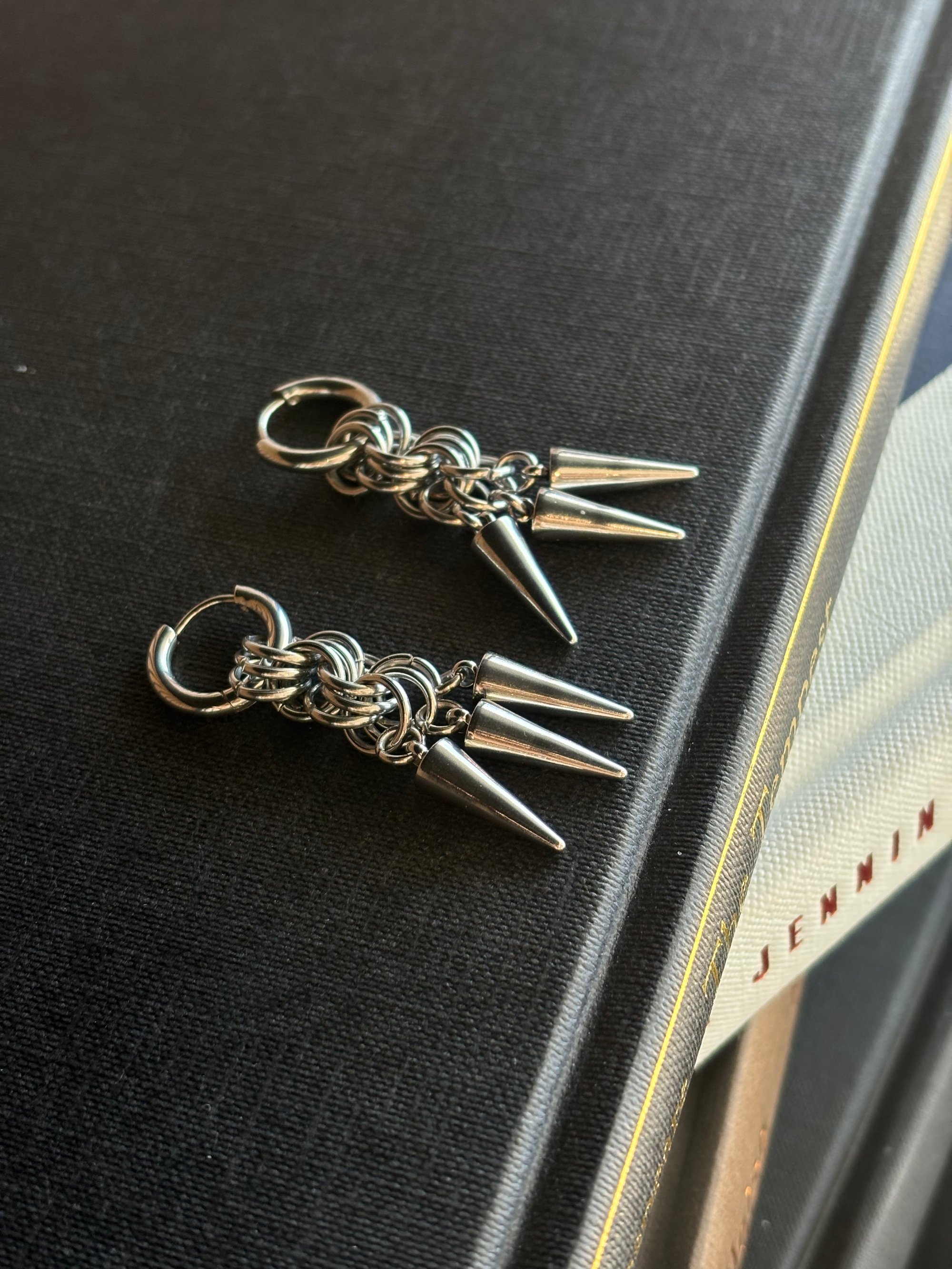 Simple yet powerful statement earrings handmade by me! Stainless steel rings and spikes/cones, base is stainless steel.